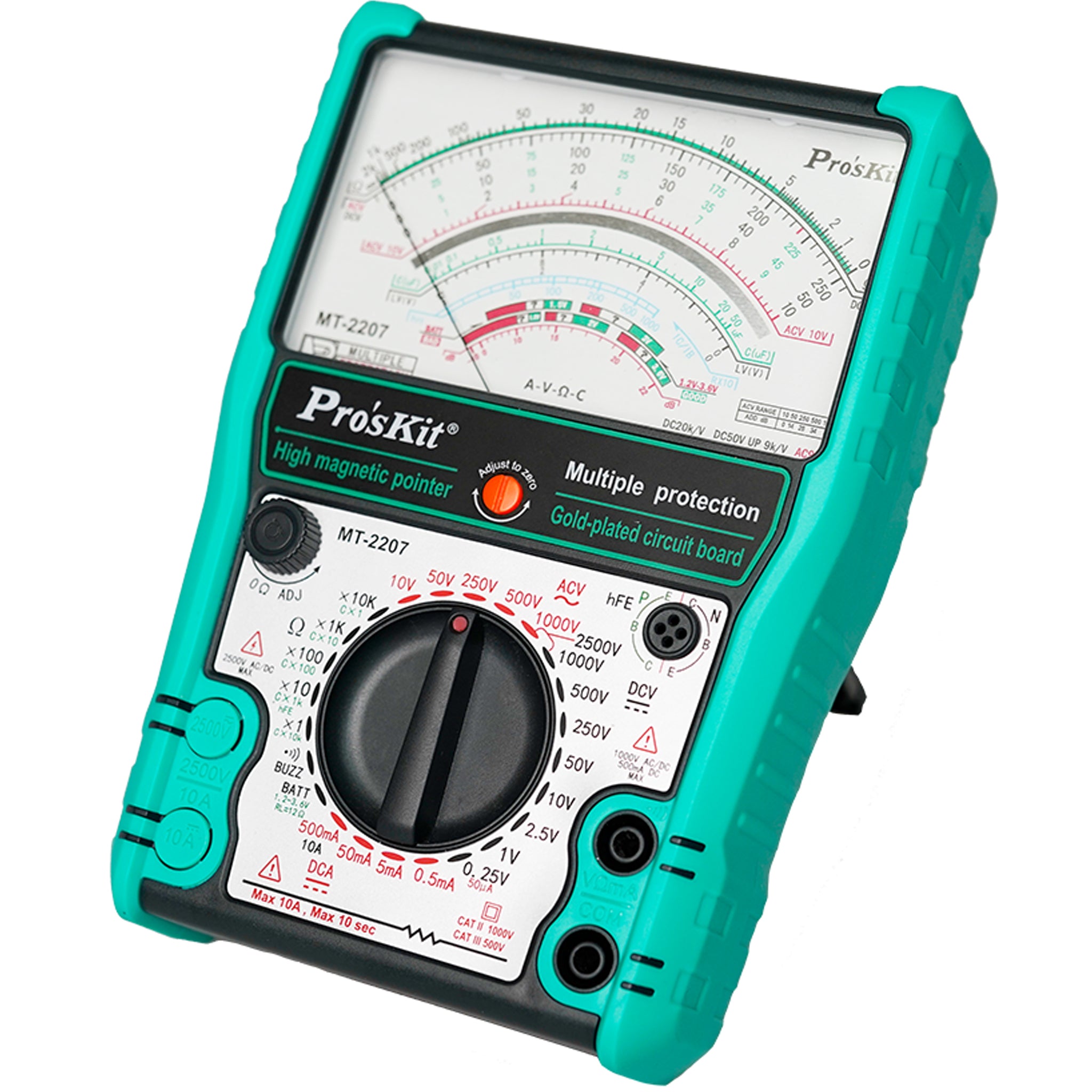 The Pro’sKit MT-2207 analog multimeter is a practical, easy-to-read testing tool designed for everyday electrical and electronics work. Its classic analog display makes it simple to see changes and trends in voltage or current at a glance, which is especially useful when checking batteries, power supplies, and basic AC or DC circuits. This analog multimeter is well suited for home users, students, beginners, and anyone who prefers the fast, natural response of an analog meter.